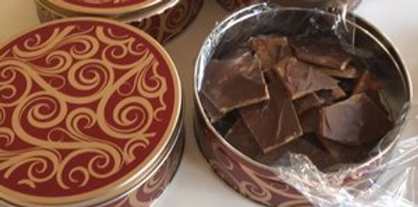 Our Homemade Peanut Brittle comes in a decorative tin.